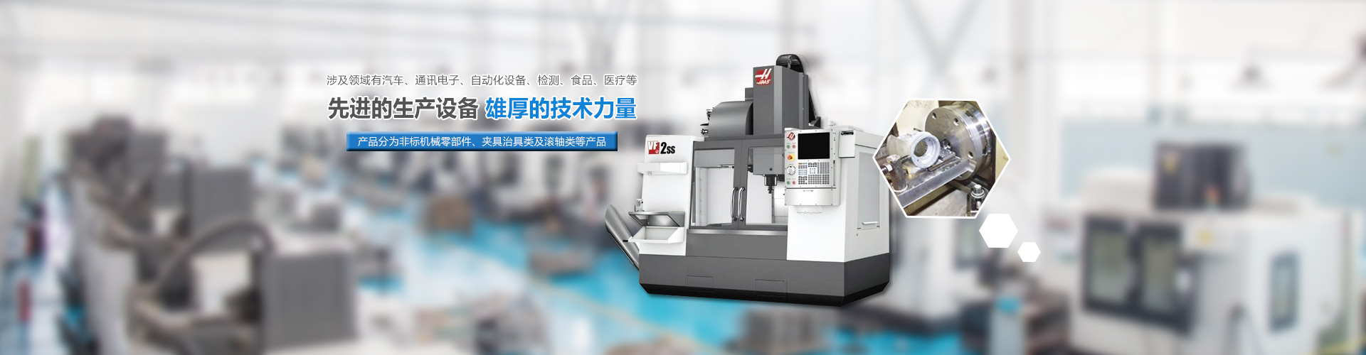 配備生產(chǎn)設(shè)備24臺(tái)加工中心(包括哈斯(HAAS)、斗山(Doosan)等進(jìn)口四軸加工中心機(jī)器),20臺(tái)數(shù)控車(chē)床等全面滿(mǎn)足您的定制需求。